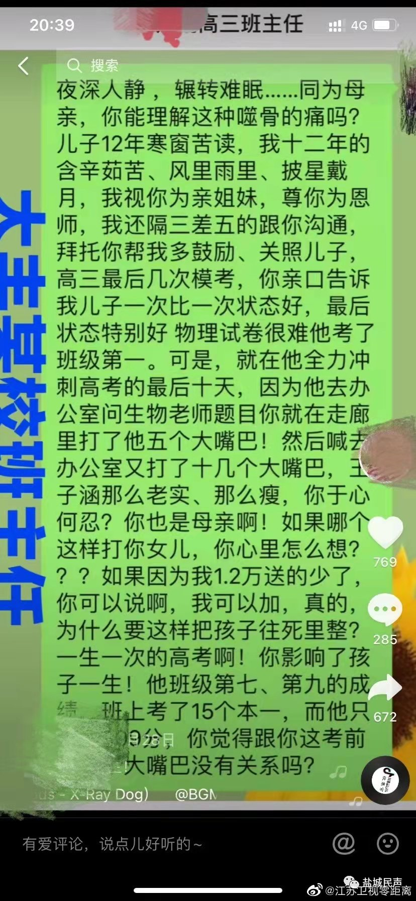 标题: 盐城某高校老师打学生,该老师已道歉 [打印本页]