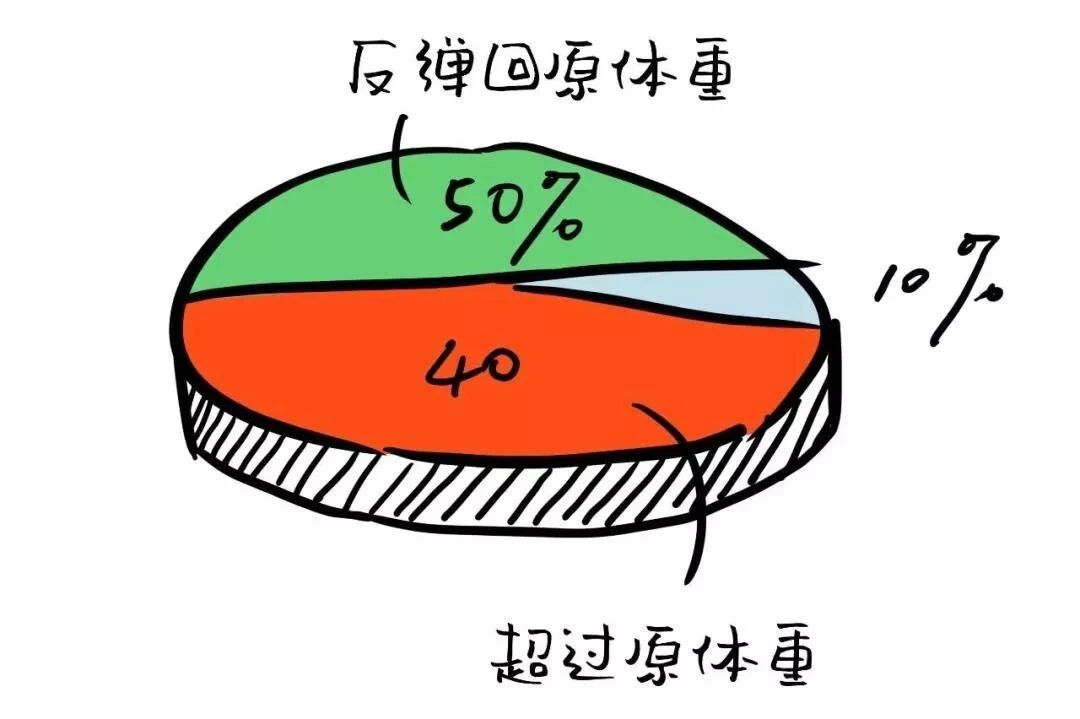 有数据统计显示,靠节食减肥的人中,一半的人会反弹到原来体重,还有些人甚至会比原来更胖。