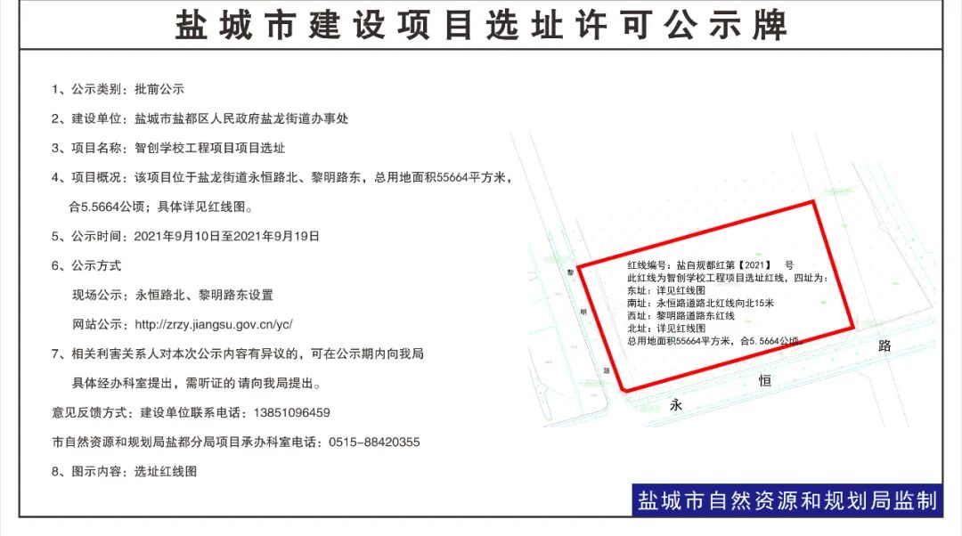 公示文件显示,智创学校位于永恒路北、黎明路东,总用地面积55664㎡【约84亩】。