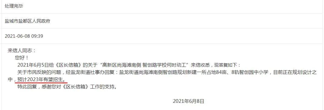 智创学校,是政府重点打造的民生工程。根据官方最新回复,智创学校是一所九年制学校,办学规模8轨,预计2023年招生。