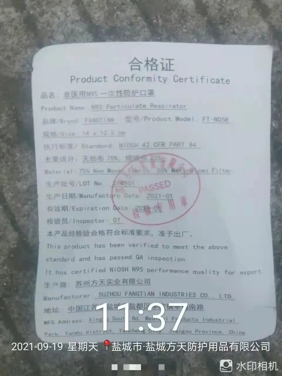 盐城一家口罩厂,方天防护用品有限公司口罩这样晒晒还能用吗?虽然是非医用N95一次性口罩,但生产过程中要求还是严格的,这样直接全罗晾晒,是否合规,希望盐城卫生部门予以调查。