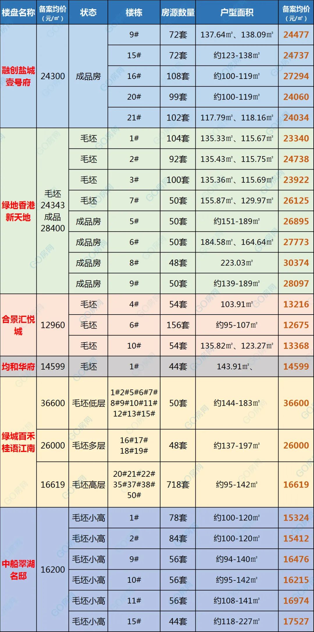 比如,近期盐城发改委网站公布了一批新房备案价表格,其中有两个万元地项目分别是城中绿地香港新天地和城西南融创盐城壹号府