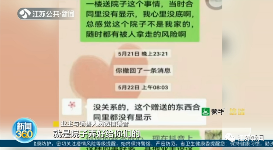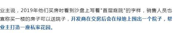 销售人员在和业主语音聊天时也承诺,交付的时候,开发商就会把院子围起来。