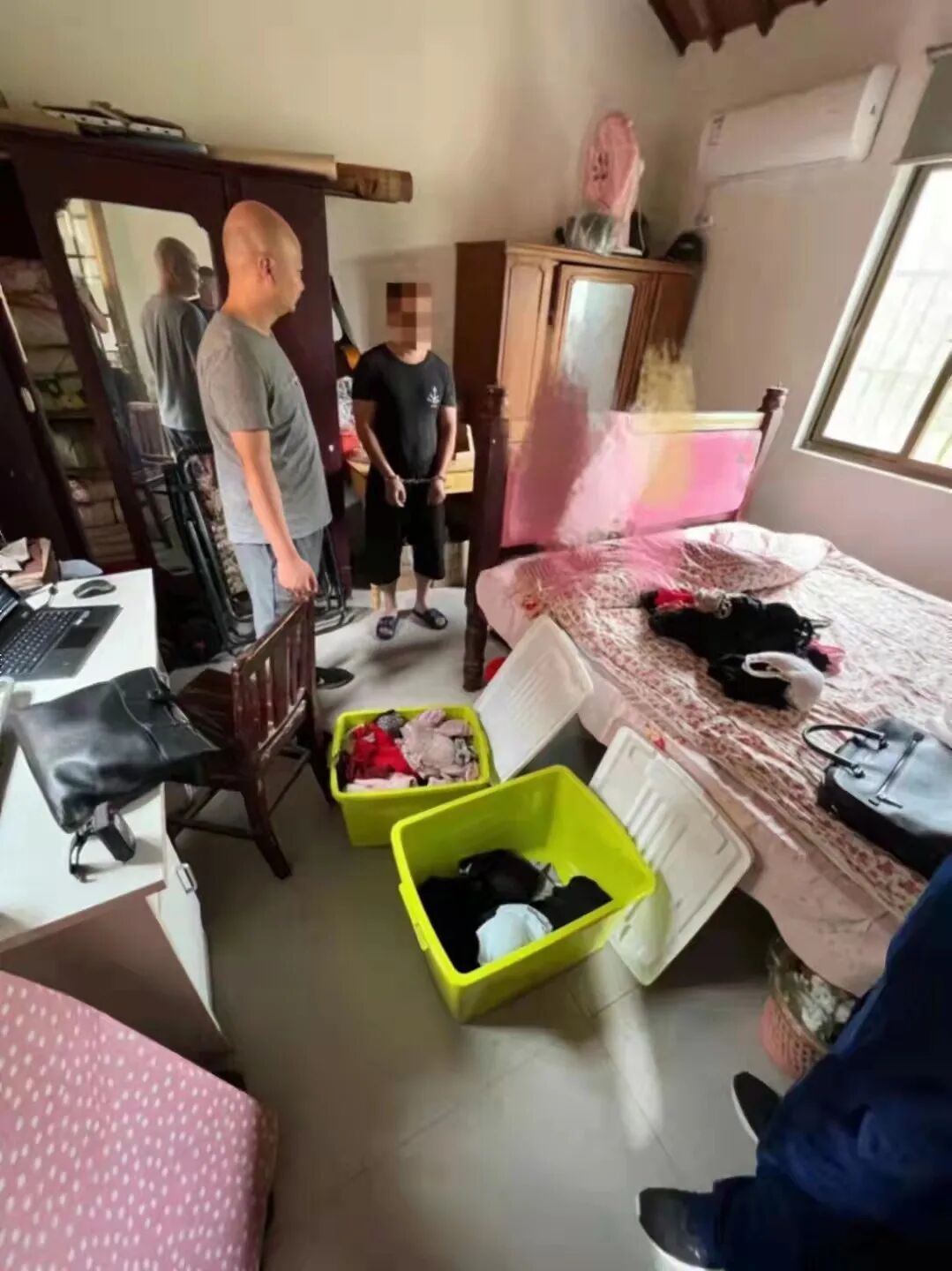 “我的内衣快被偷完了。”民警听后,便接着向其了解相关具体情况。原来,30岁左右的刘女士家住弶港镇某小区,她发现前几天晒在家门口的内衣内裤不见了,家中衣柜里的内衣也少了很多。民警得知情况后,便前往现场进行查勘。