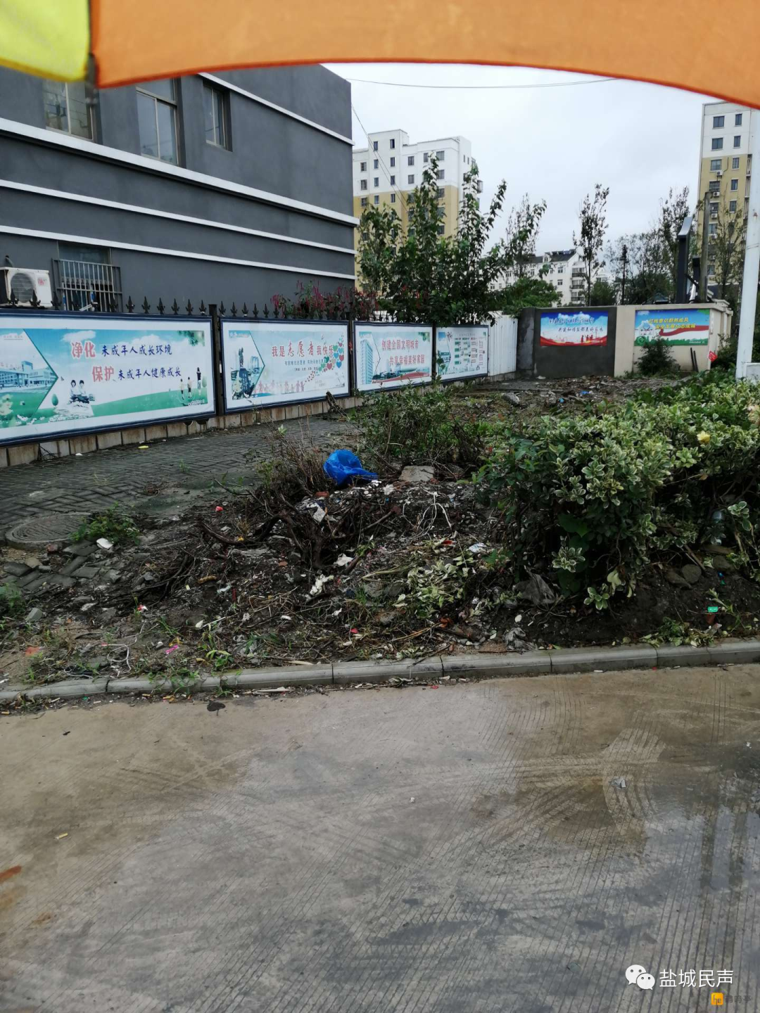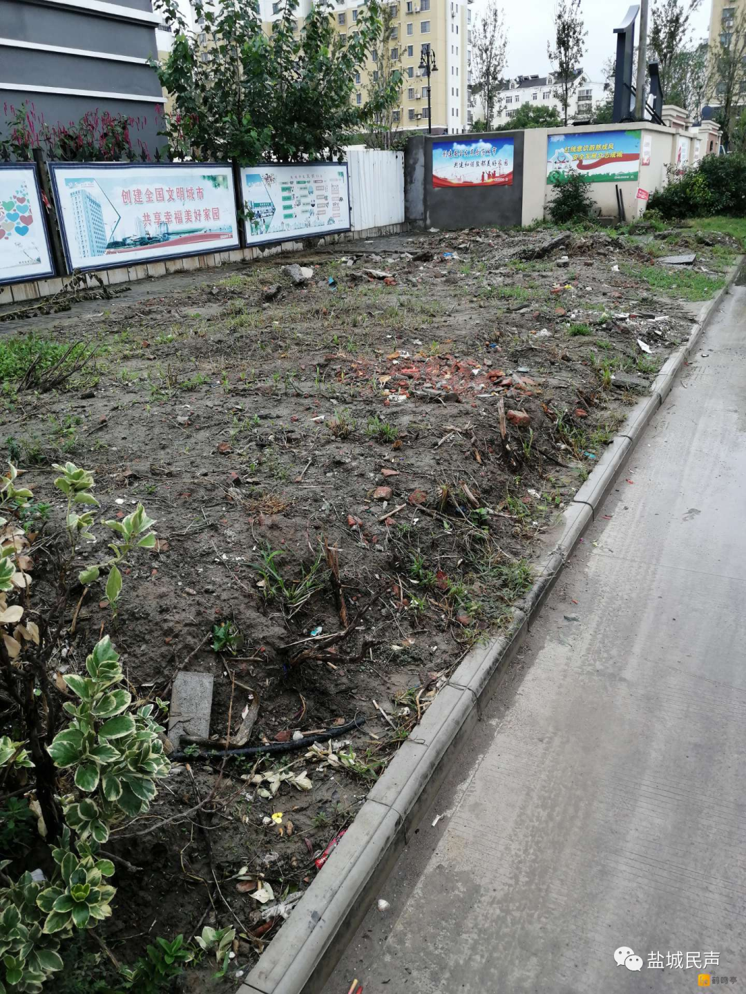 目前正在创建文明典范城市,希望盐都区潘黄街道迅速行动起来,抓紧时间补绿植绿,或是路面水泥硬化用作停车场,整改好周边环境,以实际行动确保创文工作不失分!