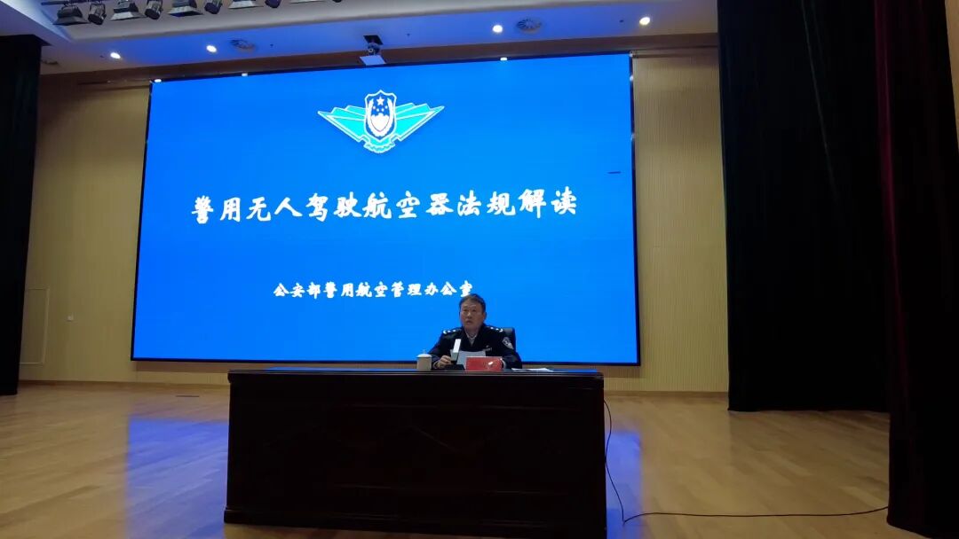 中国人民公安大学无人机培训考试中心主任陈文杰以《警用无人机理论培训及考试系统建设应用》为题开展专题授课。