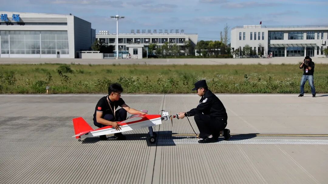 参赛队员操纵一架警用固定翼无人机起飞,精准操控,无人机展现出了灵活自如的“好身手”,完成上升旋转、下滑着陆等科目。
