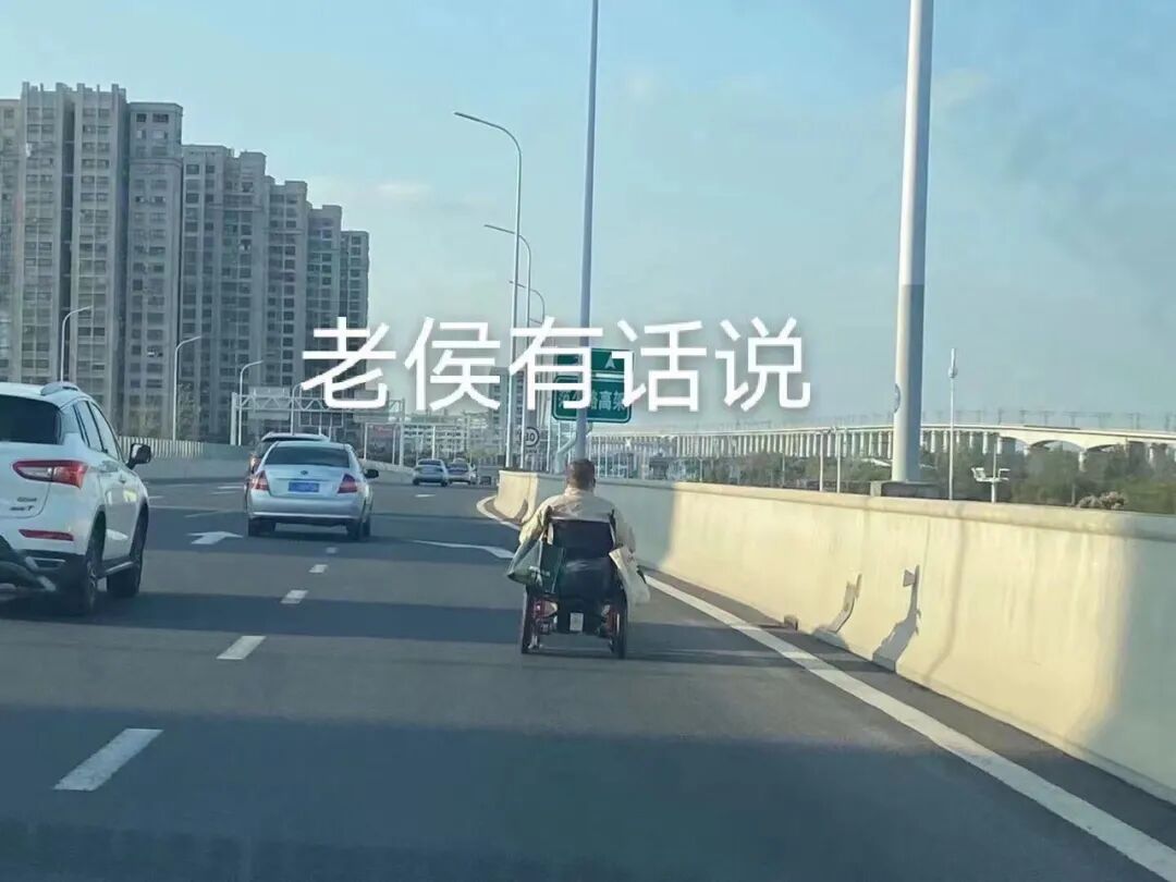 今天下午一辆残疾轮椅车上高架的图片引发网友热议。