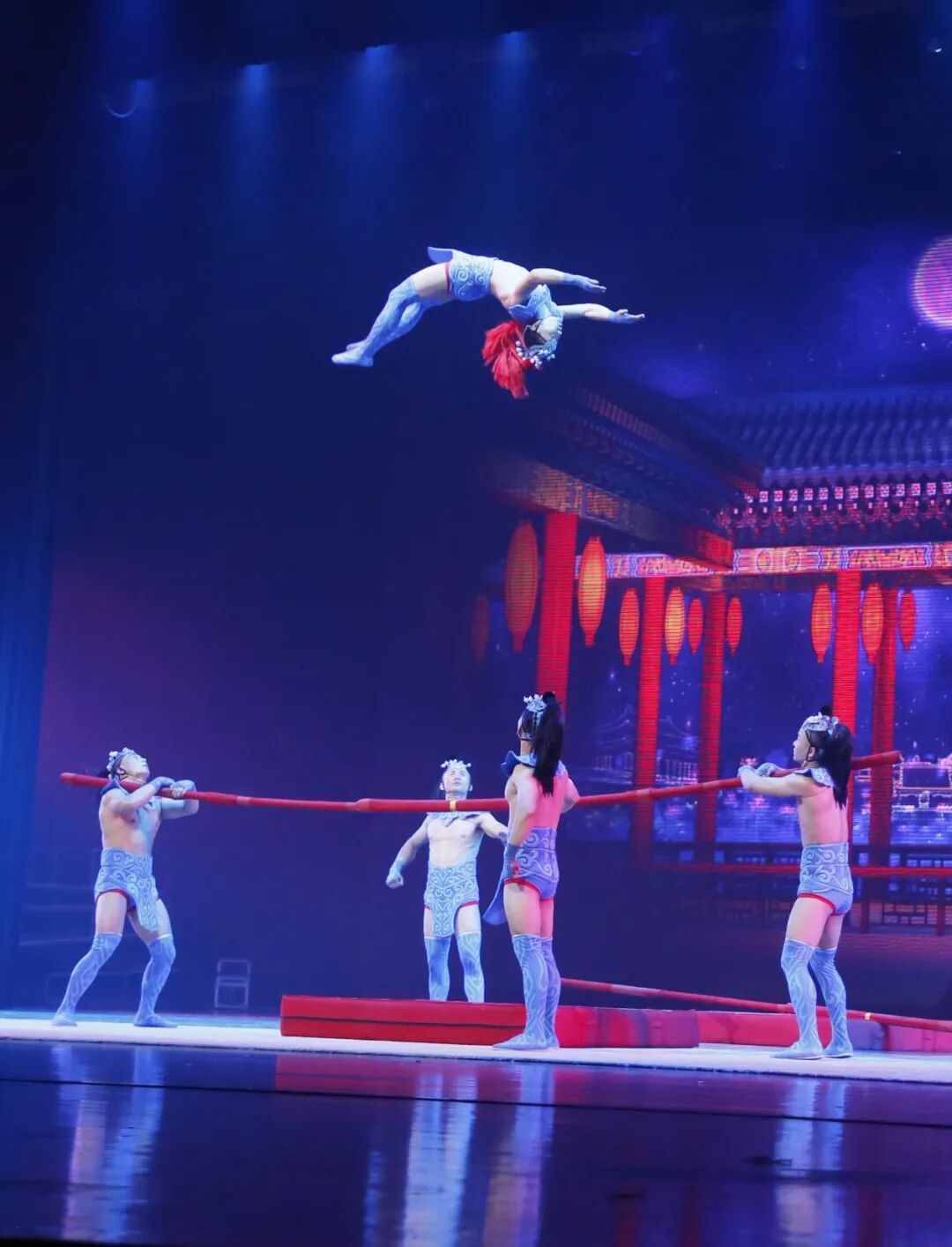 简介:《抖杠》是一个难度和风险性极高的节目,演员在不足20厘米宽的极具弹性的双人抬着的杠子上完成连续起跳、翻腾等系列动作,讲究“尖子”与“底座”的充分信任和默契配合,对动作的精准性要求更高。该作品实现了杂技与戏曲的跨界融合,用戏曲的造型和表演演绎杂技的技巧,形式和内容令人耳目一新。