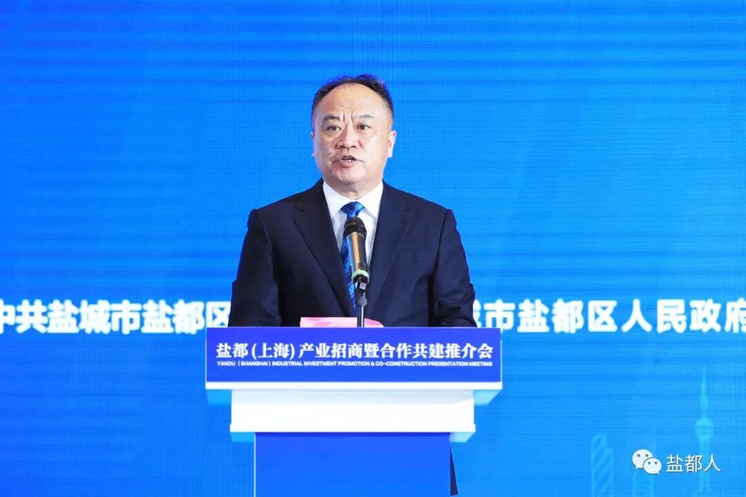 马正华在致辞中说,融入长三角,始终是盐都提升开放层次、实现高质量发展的现实选择和长期战略。盐都已全面融入上海“一小时经济圈”,借着长三角一体化的东风,与上海的交流日益频繁、合作不断深入,连续多年在上海举办产业推介交流活动,与上海集成电路、交通电子行业协会等机构建立了良好合作关系,普洛斯智能云仓、复旦医疗康复中心、盐芯微电子、中科院上硅所等200多个上海项目相继落户盐都,区内还有1个上海直采直供蔬菜基地和15个农产品上海直销窗口,盐都经济的高质量发展中处处都有“上海元素”。